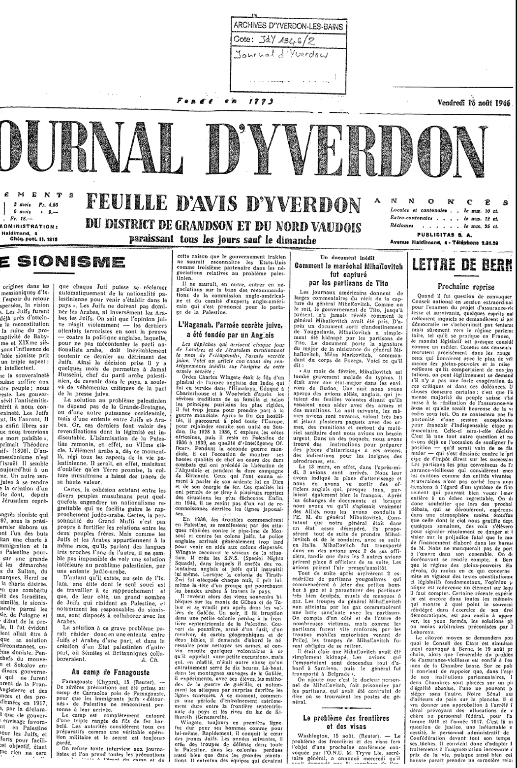 Zurnal Diverdon 1946, pismo Milosa Markovica - sma